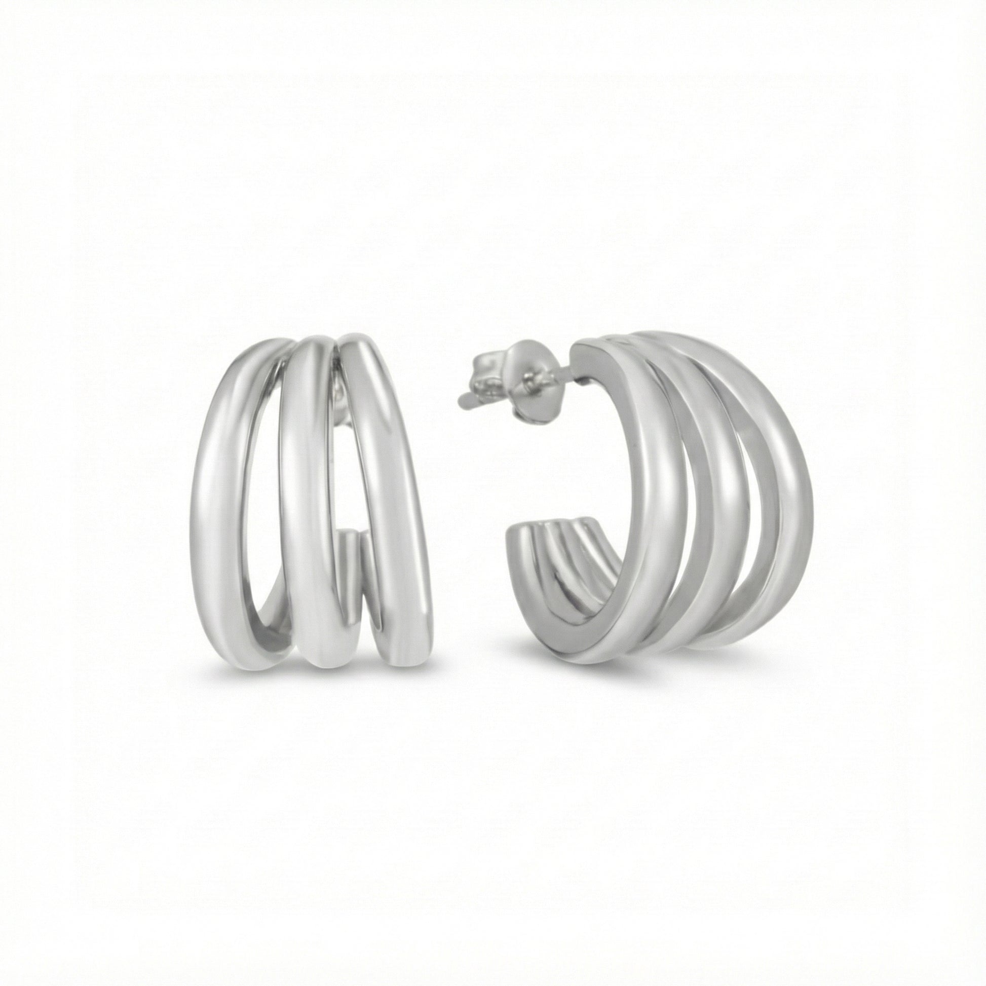 These architectural studs feature three polished bands that curve elegantly around your lobe, creating the seamless illusion of three separate piercings. It’s one piercing, triple the impact.