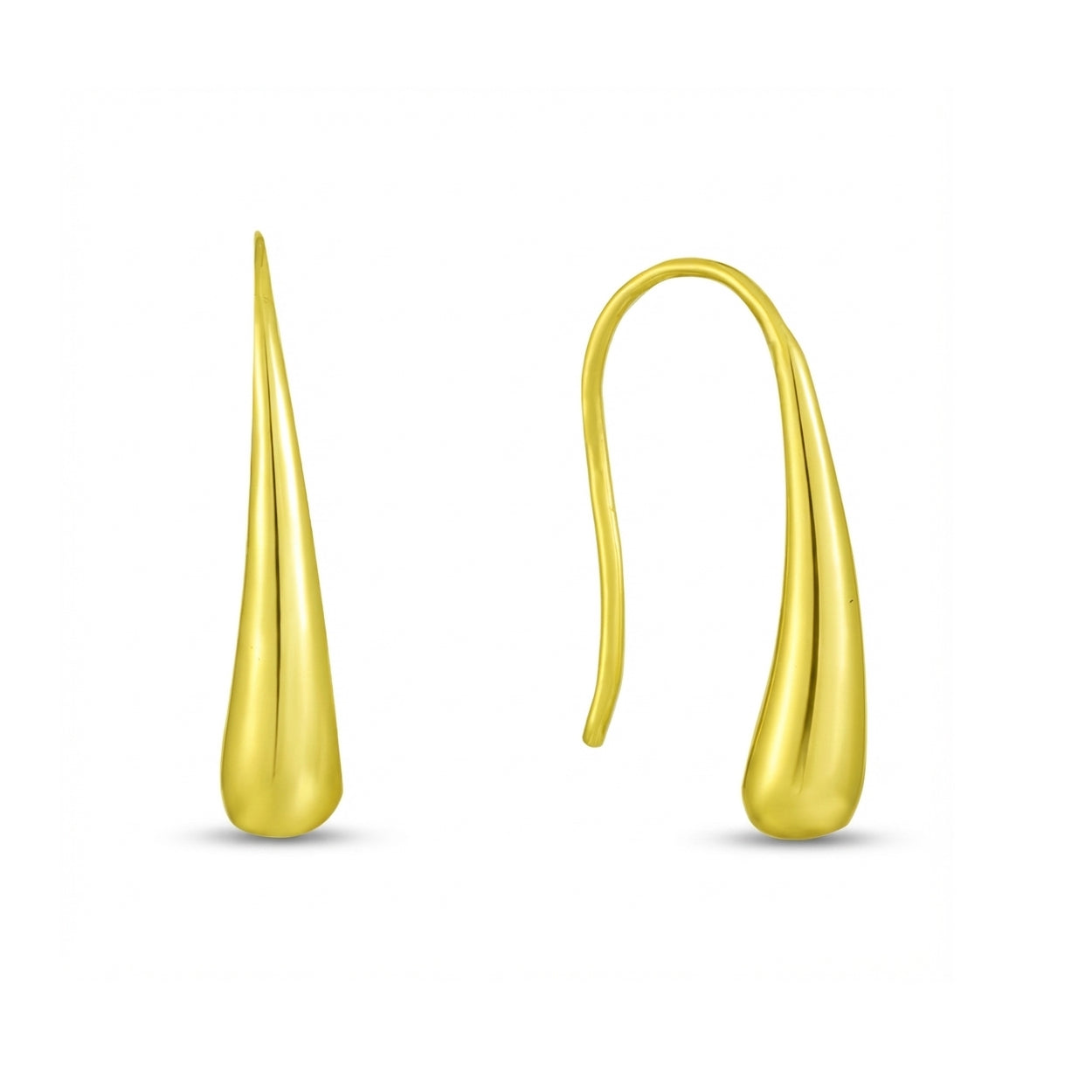 Capture the light with every move. Inspired by organic fluid forms, these Sculptural Water drop Earrings feature a high-polish mirror finish in your choice of 14K Yellow Gold or Icy Rhodium. Suspended from an elegant French wire hook, they offer the bold look of a statement piece with a surprisingly lightweight feel. The ultimate everyday luxury tailored for the modern minimalist.