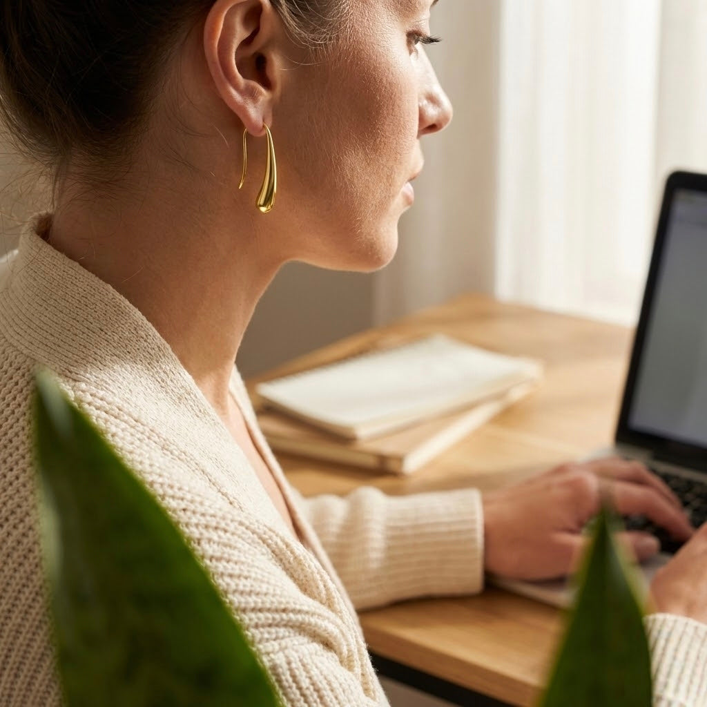 Elevate your jewelry rotation with the silhouette that’s taking over social media. Our Sculptural Teardrop Wire Earrings are the perfect fusion of artistic form and everyday function. Drawing inspiration from the fluid lines of nature—reminiscent of a falling droplet of water frozen in time—these earrings bring an immediate sense of polish to any outfit, from a white tee and jeans to a cocktail dress.
