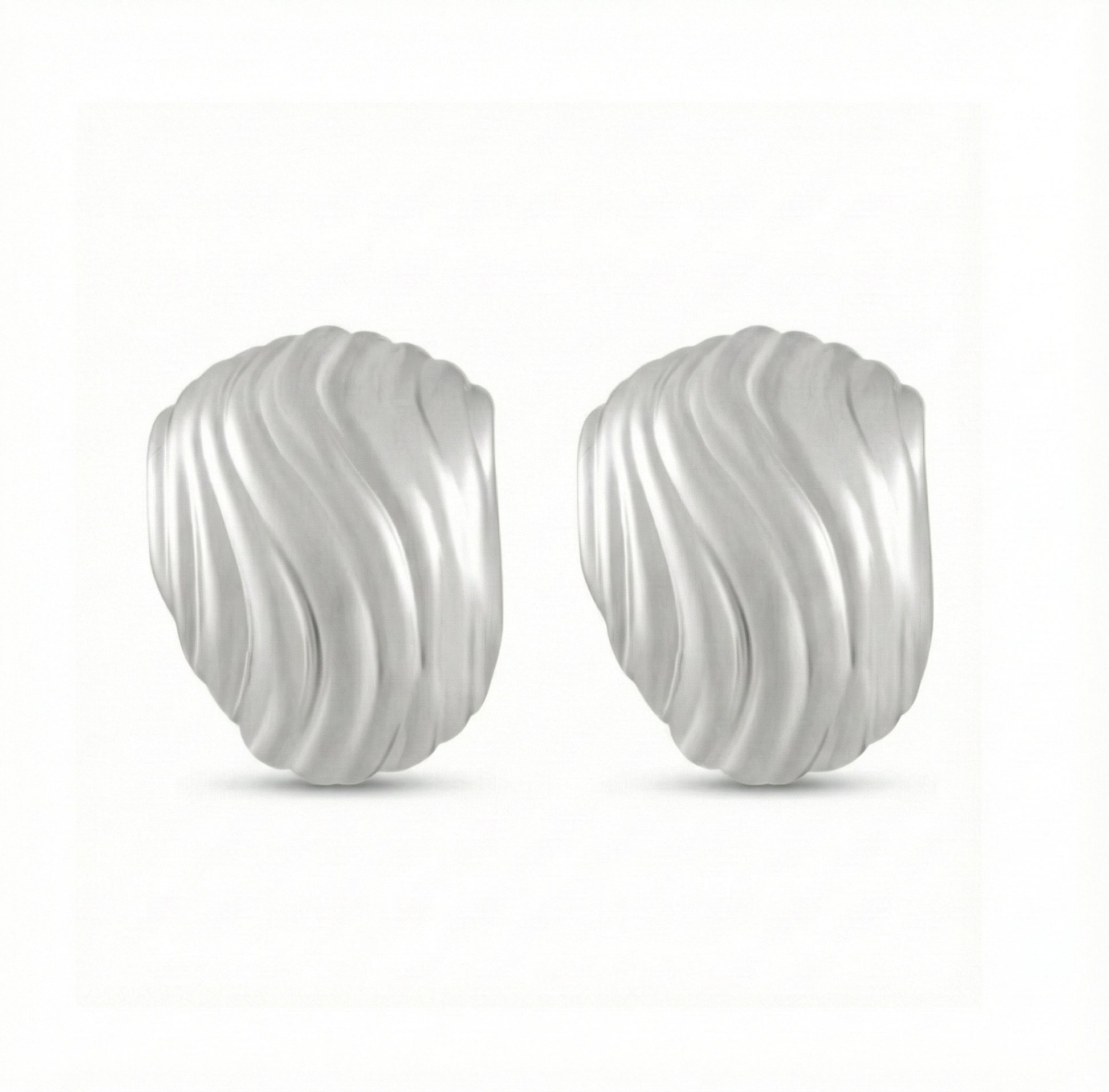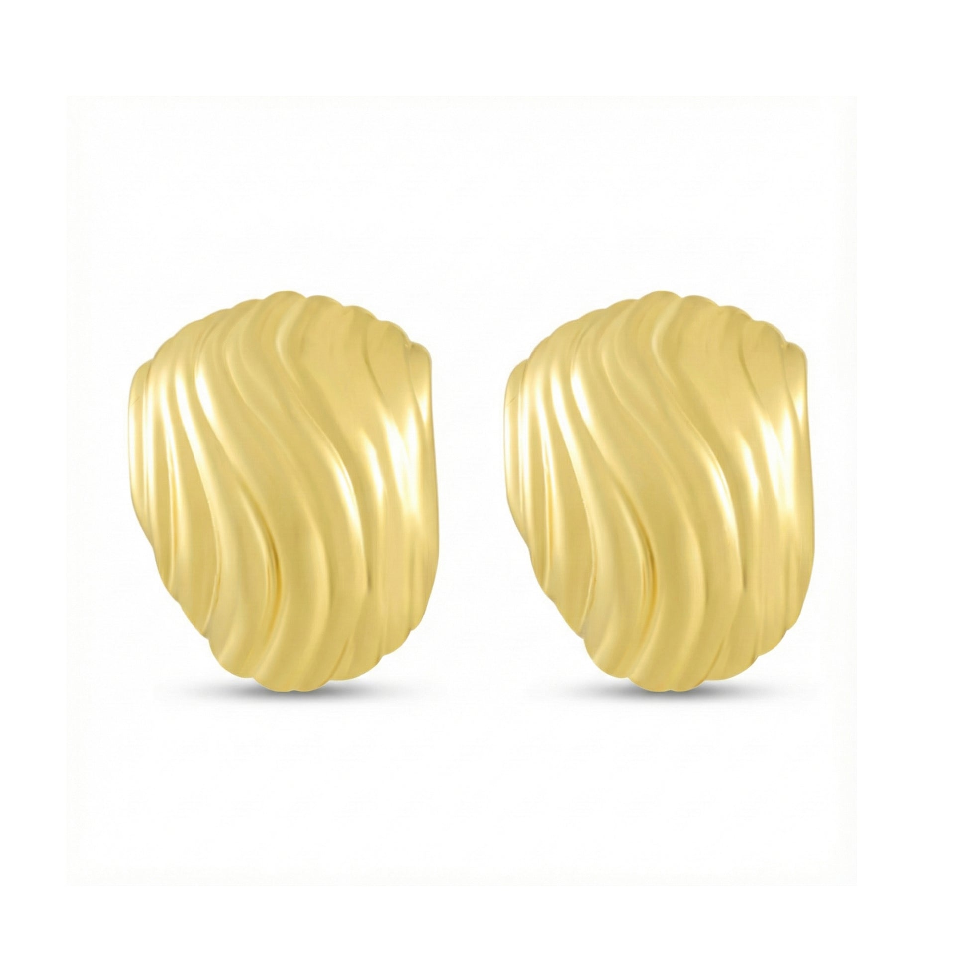 ORGANIC WAVE TEXTURE : Unlike flat studs, these 19x23mm earrings feature a mesmerizing ribbed surface inspired by natural sand dunes. The grooved design catches light from every angle, creating a dynamic, liquid-metal shine that elevates any outfit.